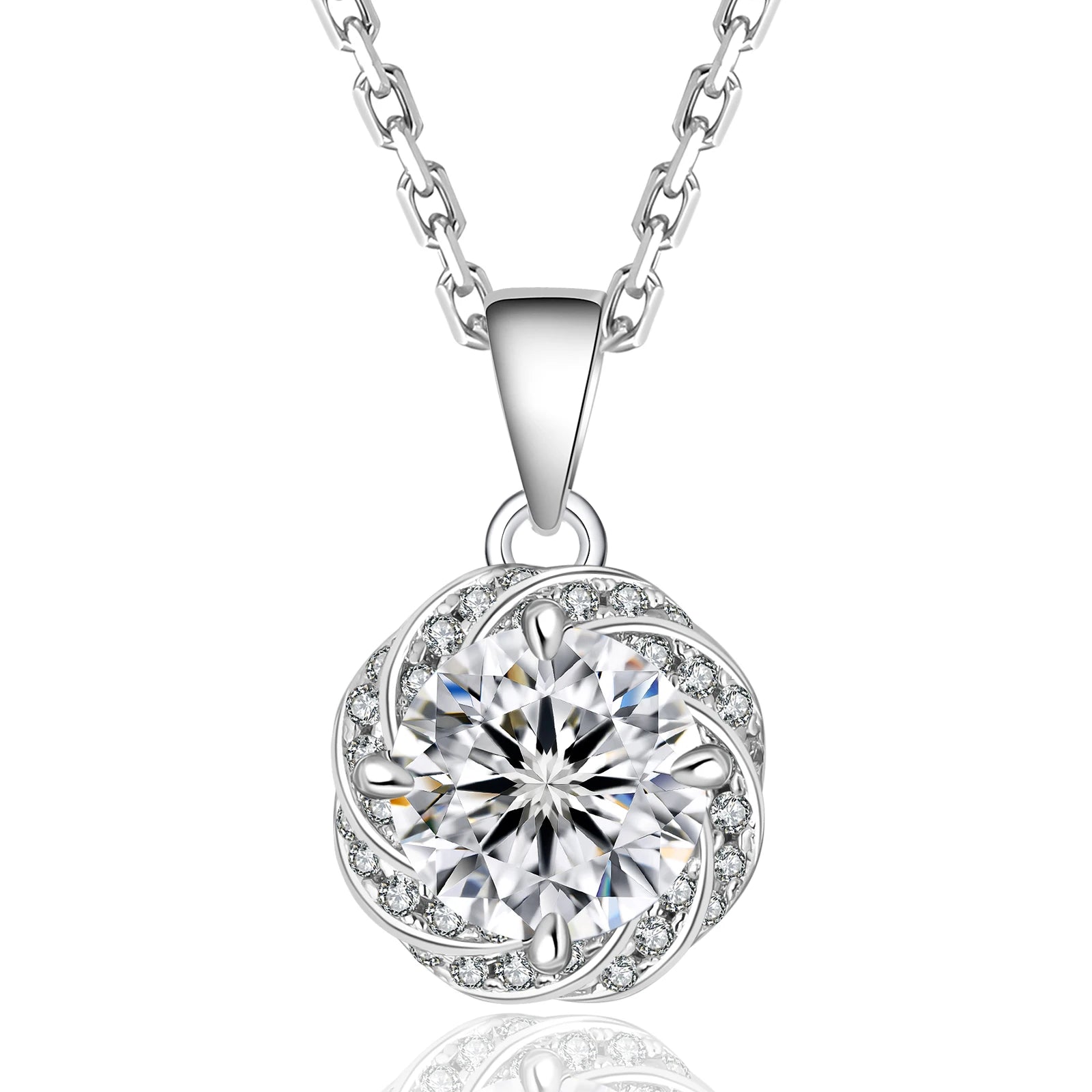 1 Carat Moissanite Pendant Necklace – 925 Sterling Silver White Gold-Plated VVS Round Solitaire Halo Moissanite Diamond Chain