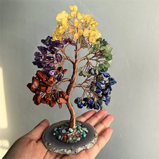 15-16cm 5 Chakra Crystal Money Tree with Agate Coaster – Natural Gemstone Chips for Decor & Energy Balance