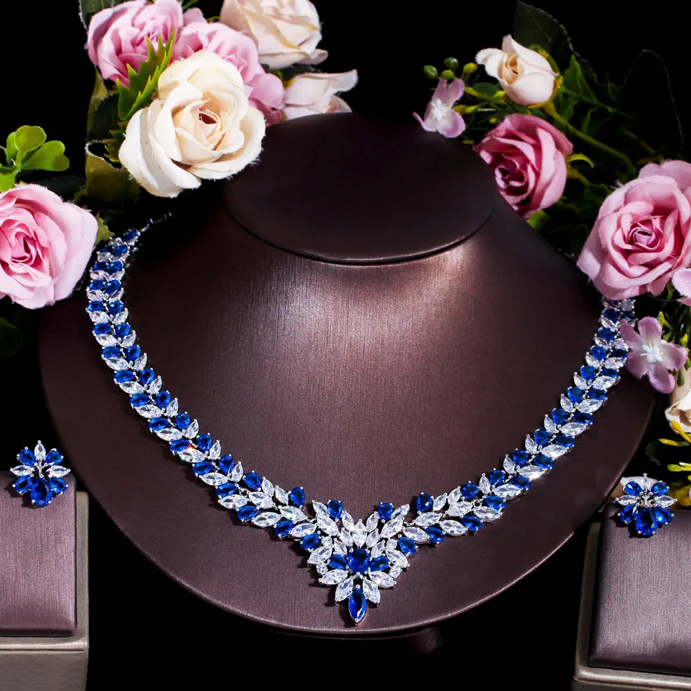 Elevate your bridal ensemble with this exquisite 5-color sparkling white cubic zirconia necklace and earrings set. Expertly crafted to capture light from every angle, this luxurious jewelry set adds a refined brilliance to your wedding day look. Designed for women who appreciate timeless elegance, it complements a variety of bridal styles with its vibrant yet sophisticated sparkle. Perfect for creating unforgettable moments, this set offers both beauty and quality for your special occasion.