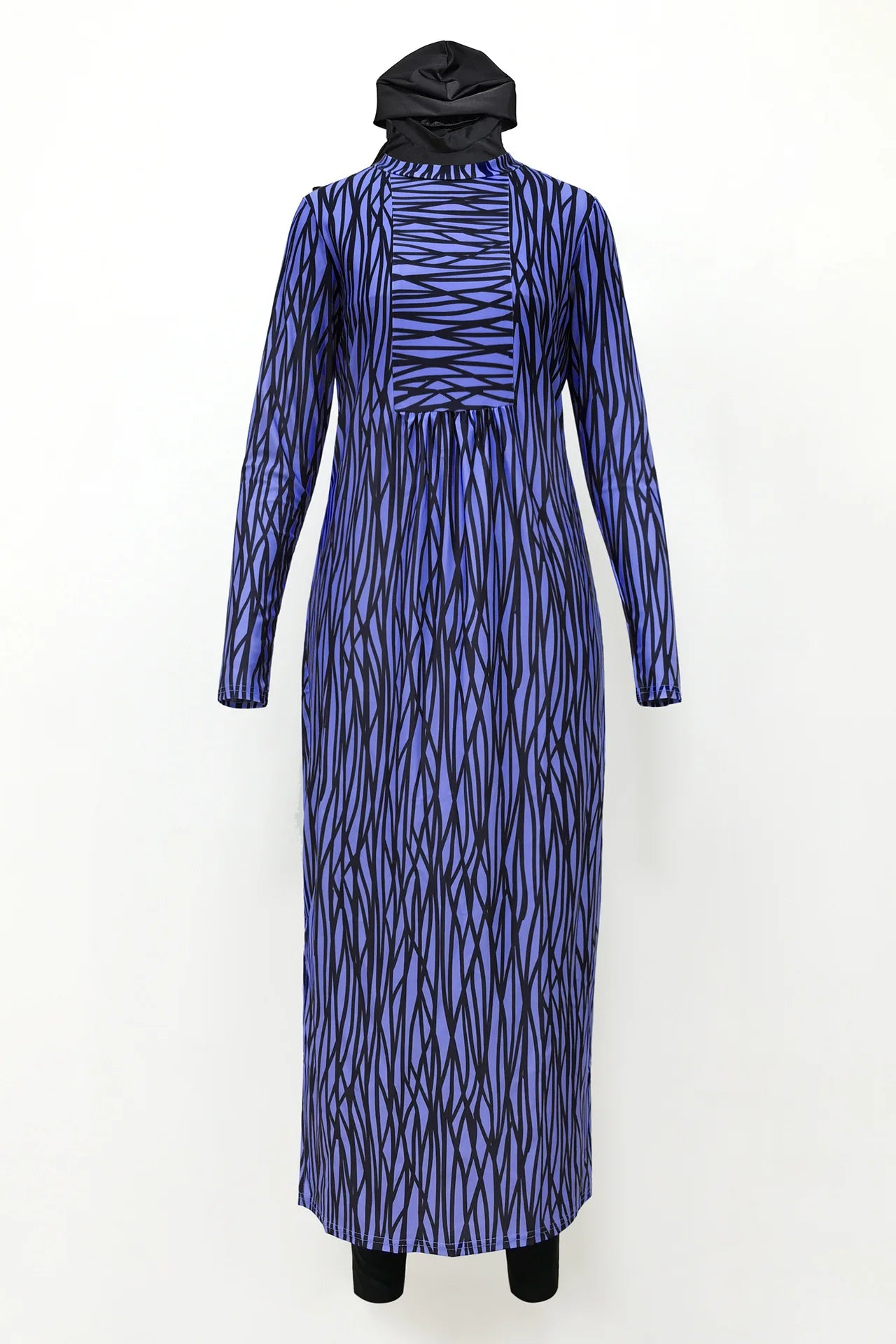 Blue Print Muslim Hijab Swimsuit – Full-Cover Modest Swimwear Abaya Burkini for Women Nasreen