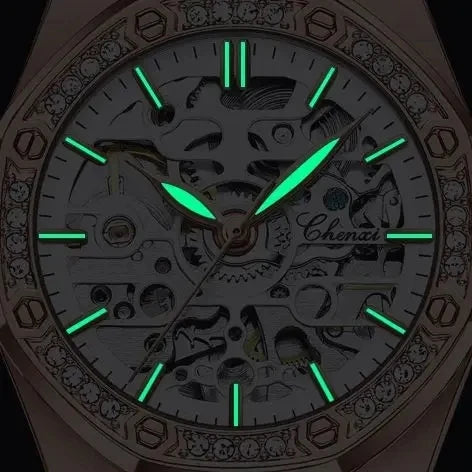 CHENXI Women’s Skeleton Diamond Automatic Watch | 8848 Luxury Stainless Steel Mechanical Wristwatch – Waterproof Bracelet for Girls & Women