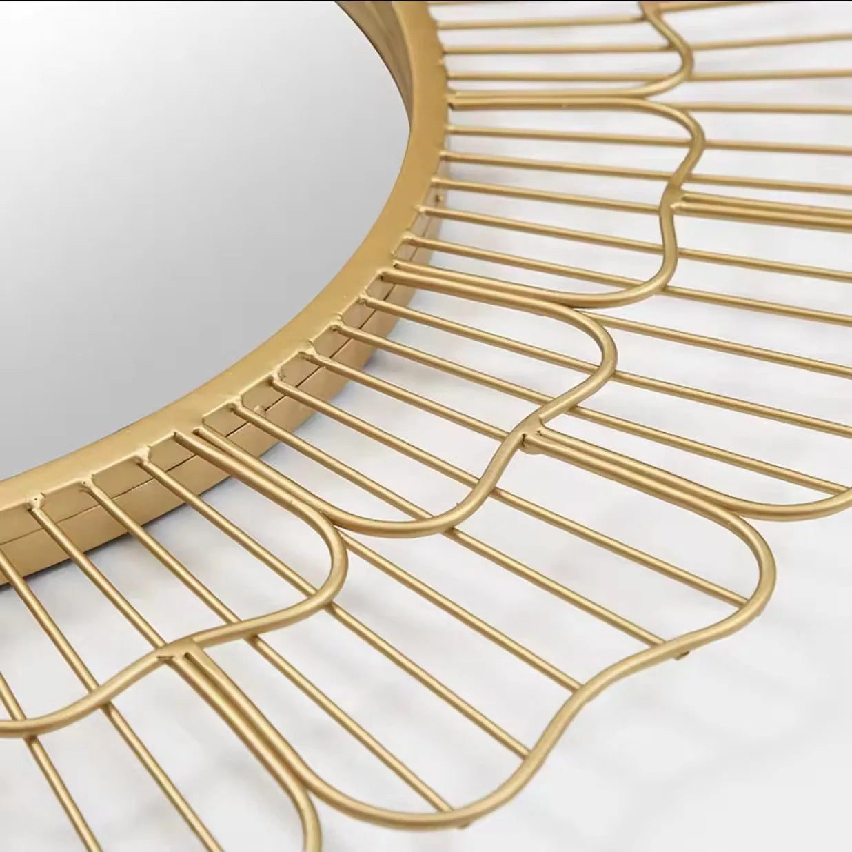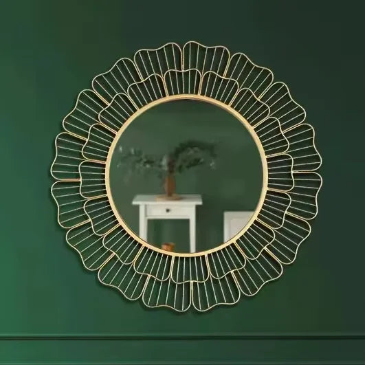 Large Round Gold Wall Mirror – Modern Iron Frame Decorative Wall Hanging for Living Room and Home Furniture