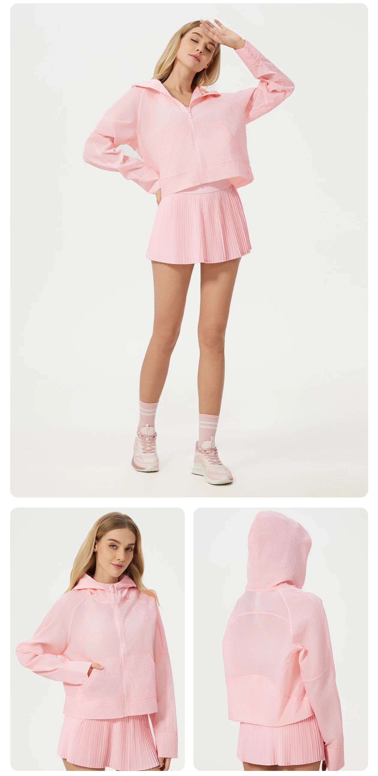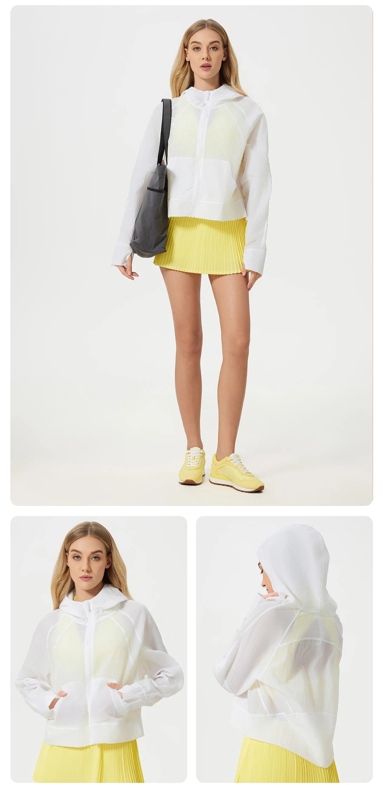 Lightweight Breathable Waterproof Sports Jacket | UPF 50+ Sun-Proof Anti-UV Hooded Yoga Jacket for Adults
