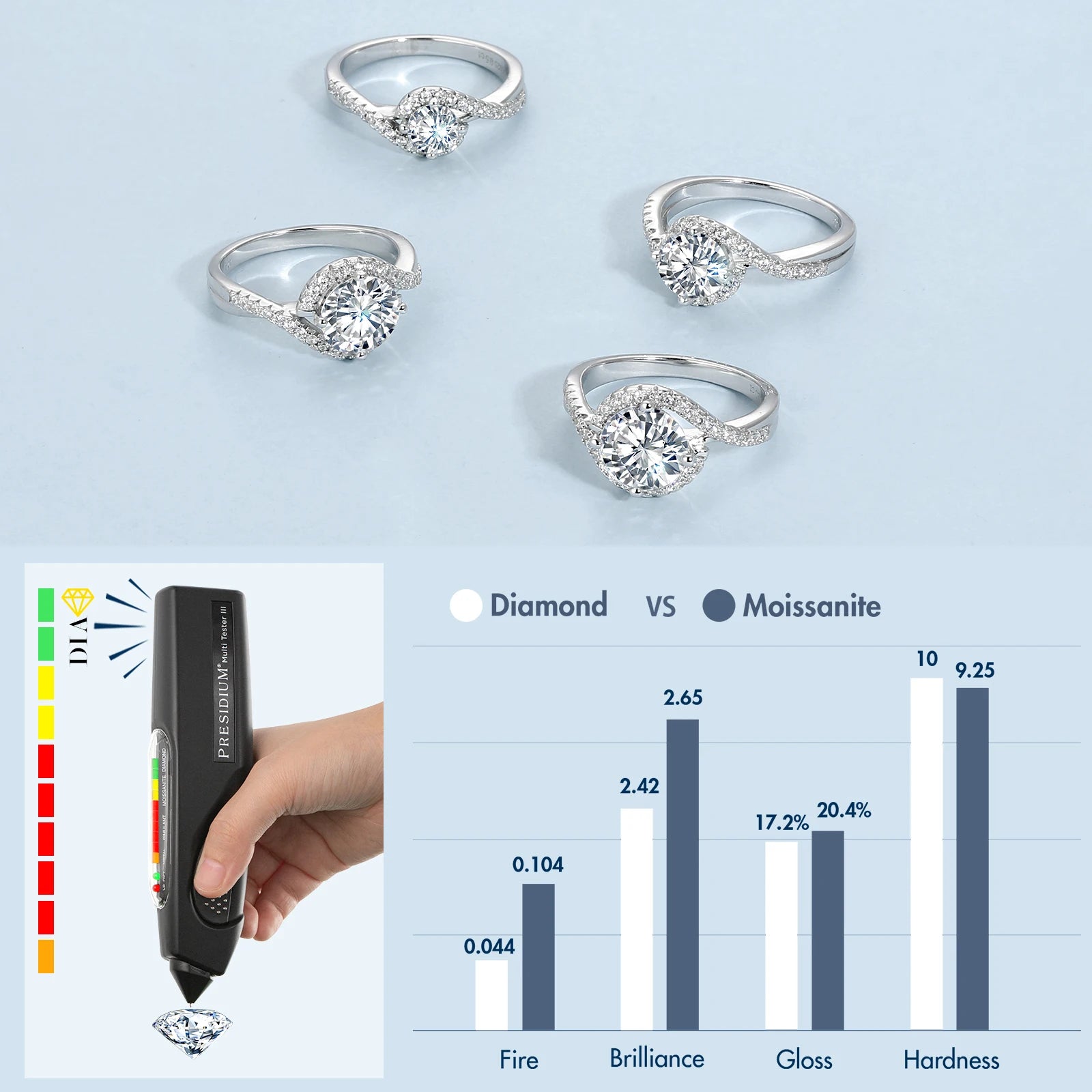 Luxury Bridal Moissanite Diamond Ring - 2.0ct & 1.0ct White Gold-Plated 925 Sterling Silver Engagement Promise Ring