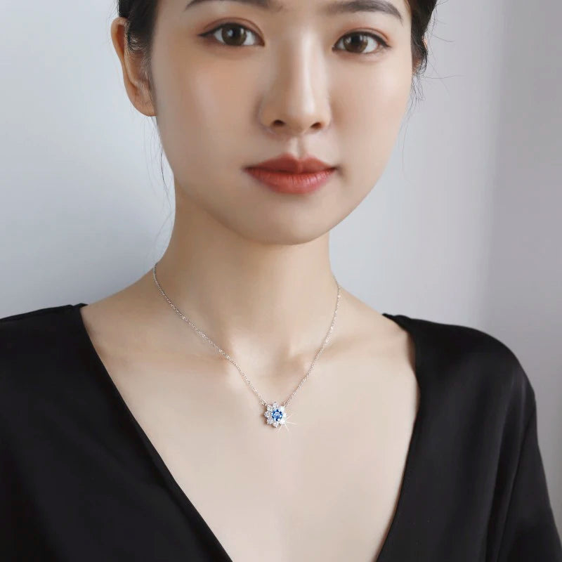 Luxury Jewelry: Sunflower 1CT Blue VVS1 Moissanite Pendant Necklace in S925 Sterling Silver – GRA Certified Women’s Gift
