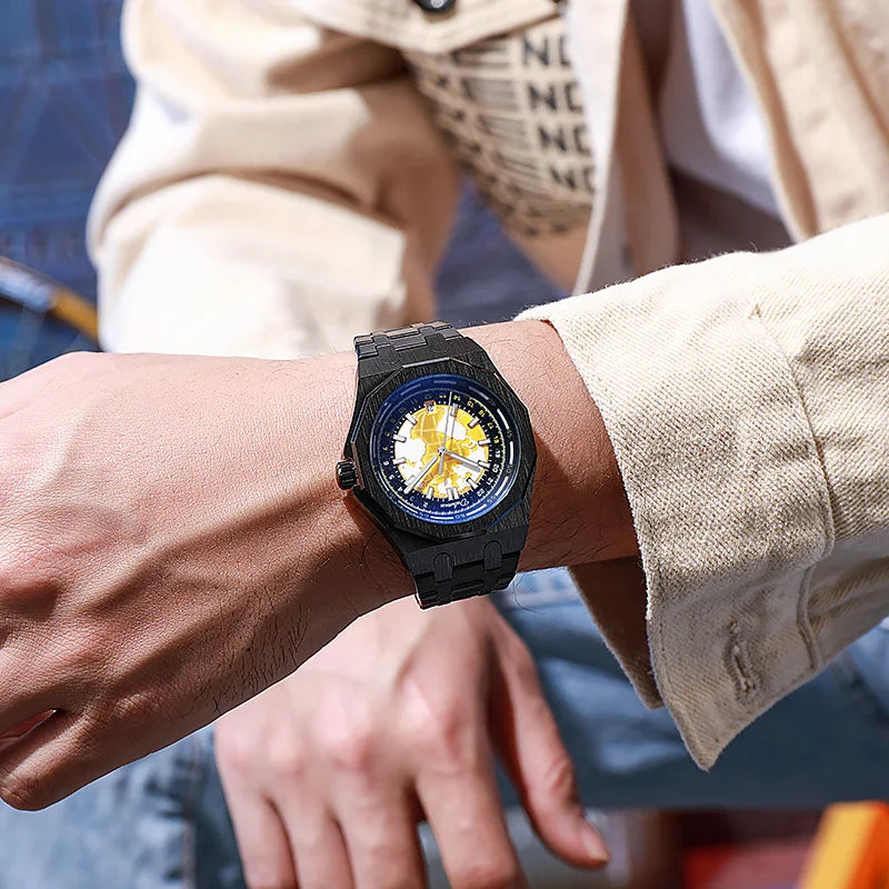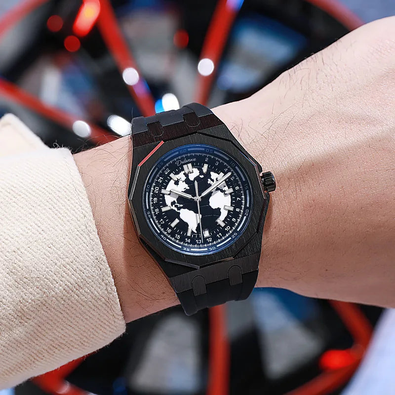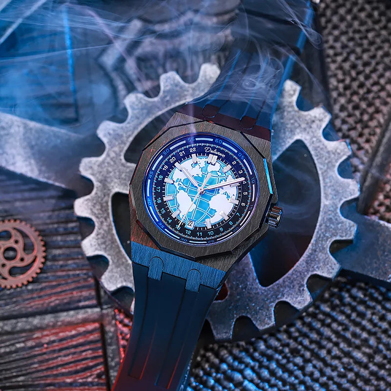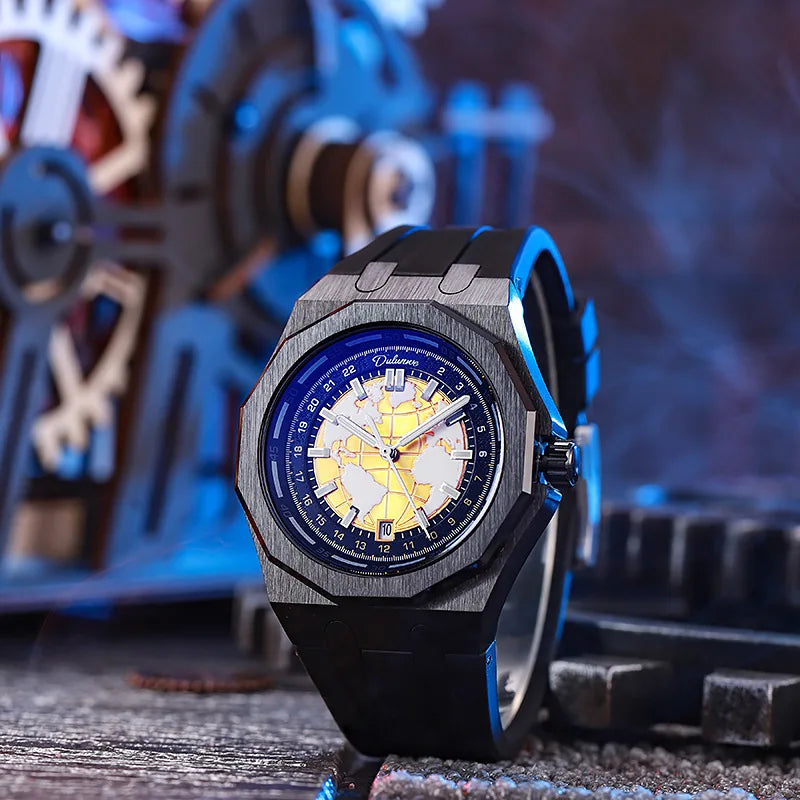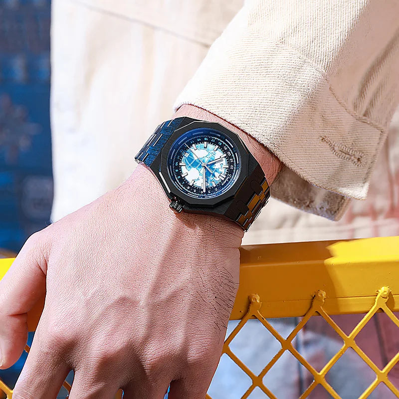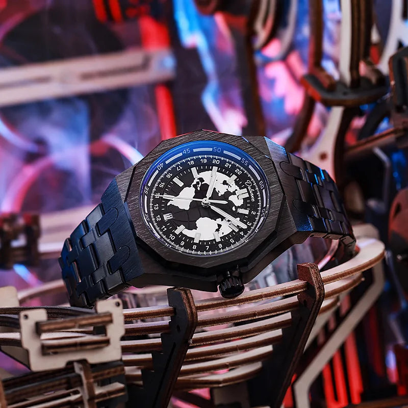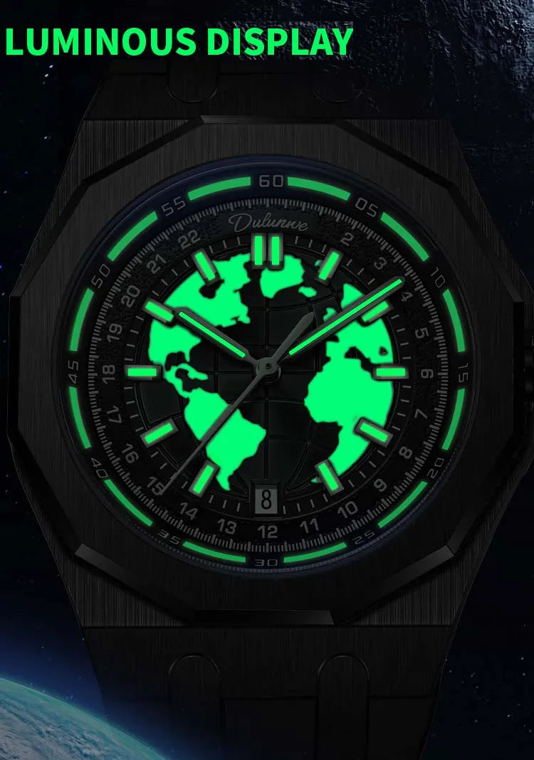 Luxury Men’s Automatic Watch – Stainless Steel Band, Waterproof Mechanical Wristwatch with Custom Earth Dial Edmund