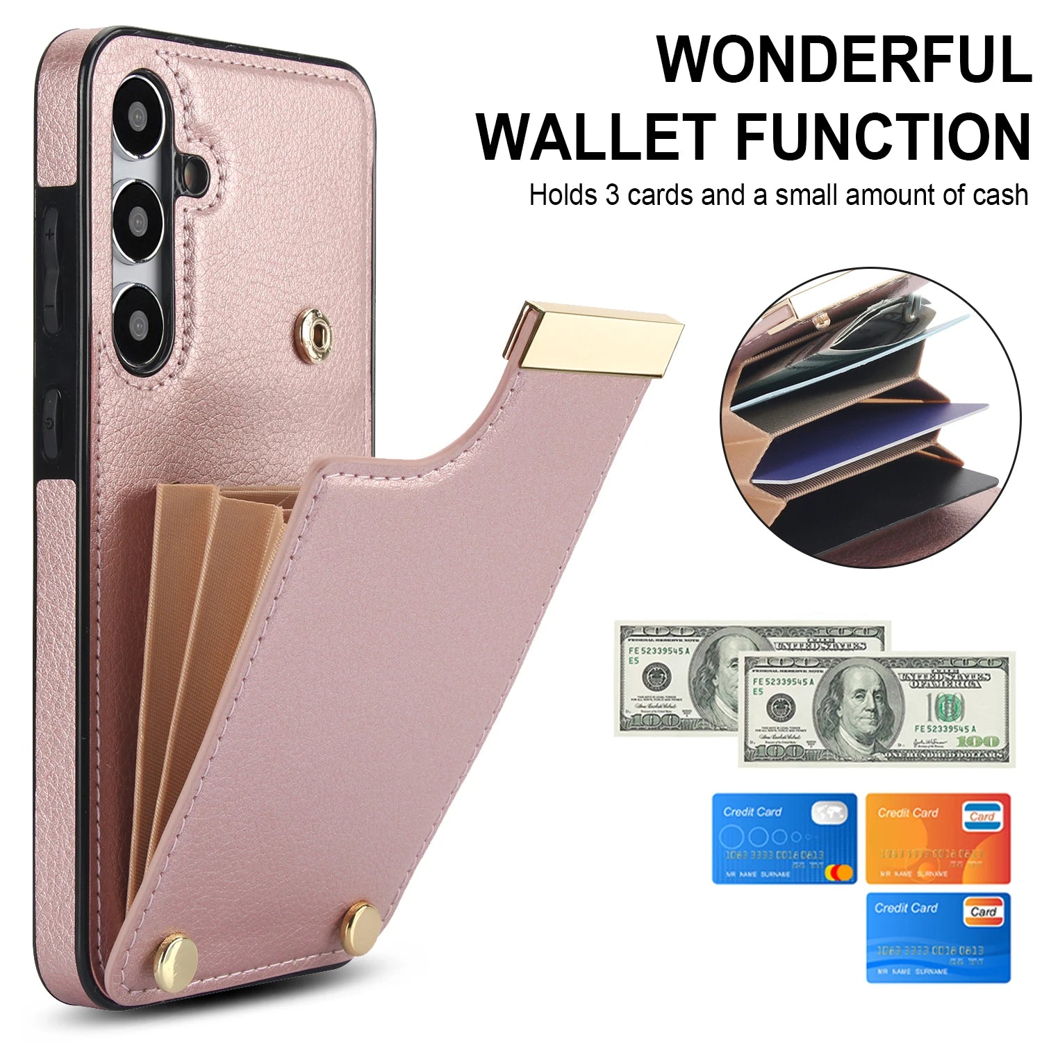 Keep your phone and your cards safe with our Magnetic Leather Wallet Phone Case! Made from durable leather, it doubles as a shockproof back cover for your Samsung S24 or iPhone 15 Pro Max. Stay organized and stylish with this convenient card holder.