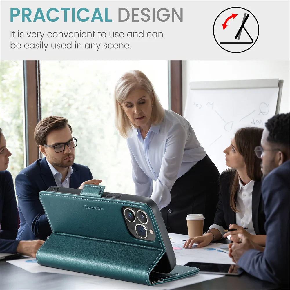 Magnetic Shockproof Leather Wallet Case – Luxury Kickstand with RFID Blocking for iPhone 14, 13, 12 Pro Max