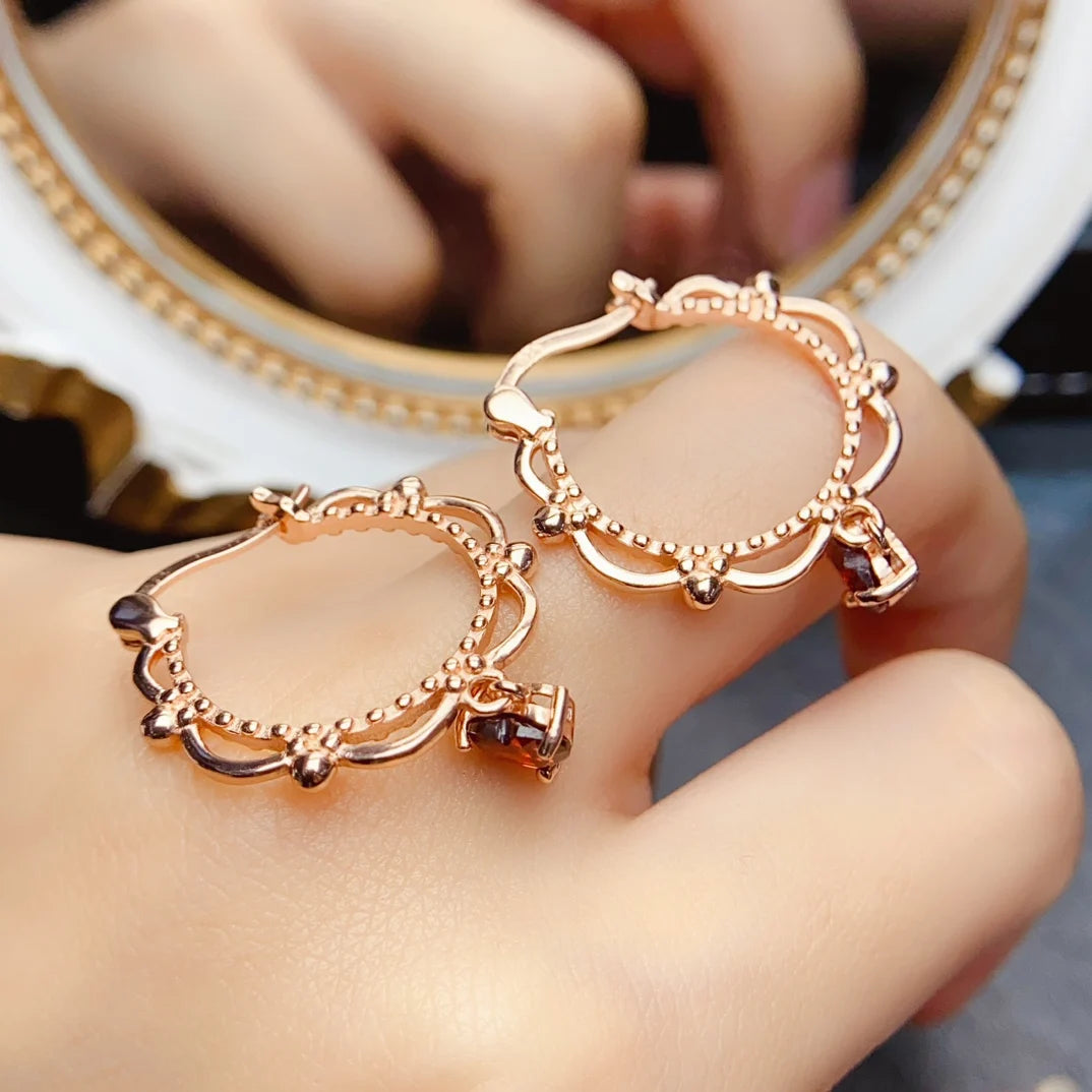Natural Garnet Gemstone Earrings – 925 Sterling Silver Fine Jewelry for Women | Elegant January Birthstone Gift