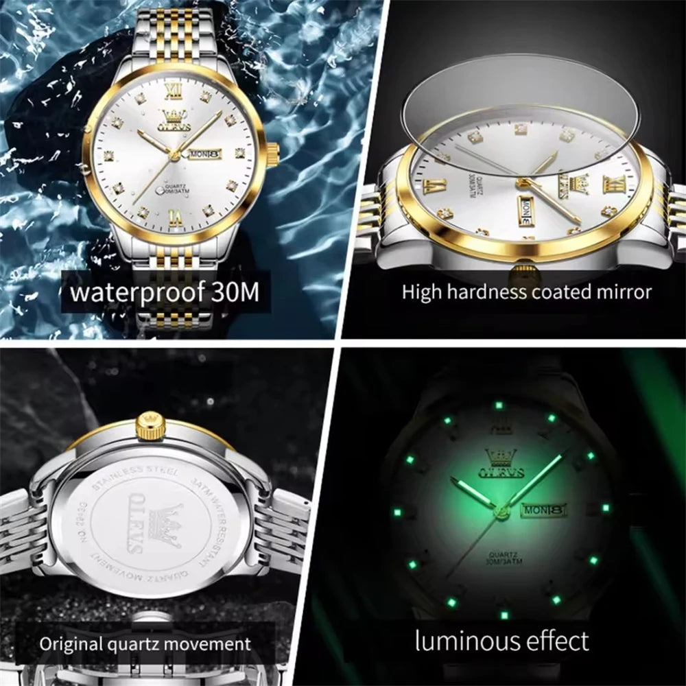 OLEVS 2943 Fashion Quartz Watch – Stainless Steel Band, Round Dial, Week Display & Calendar