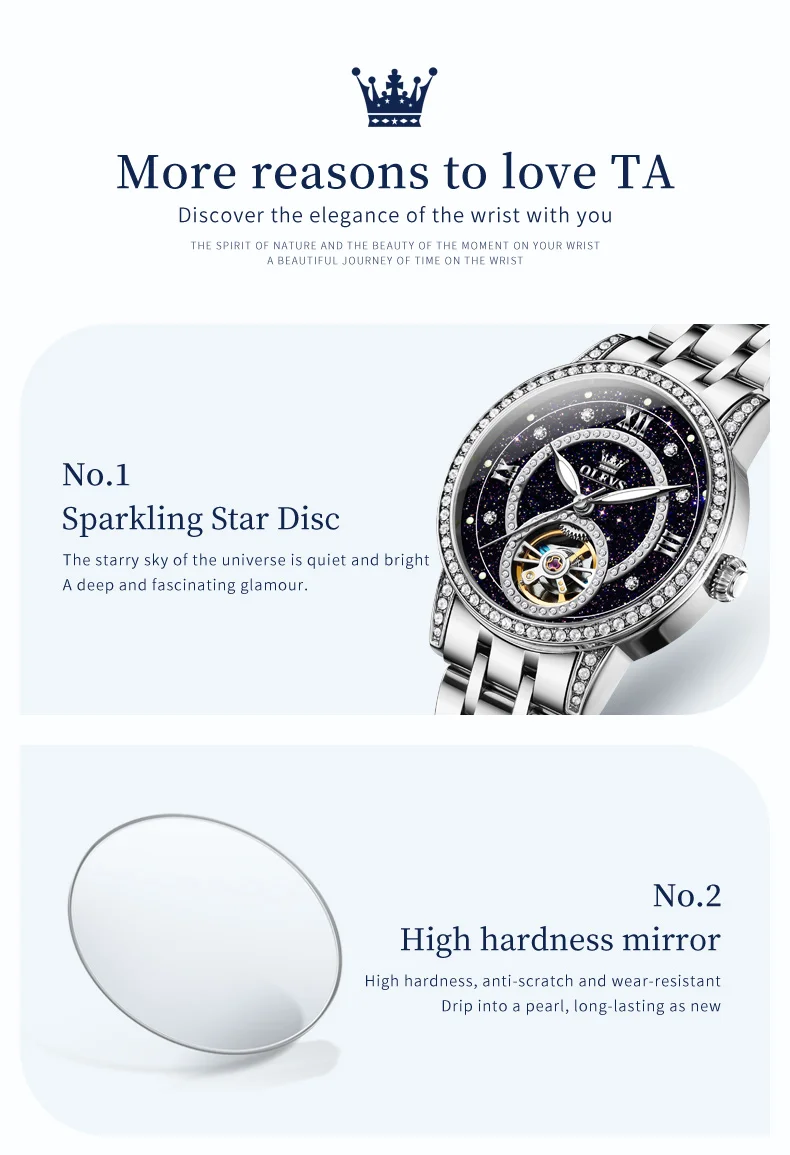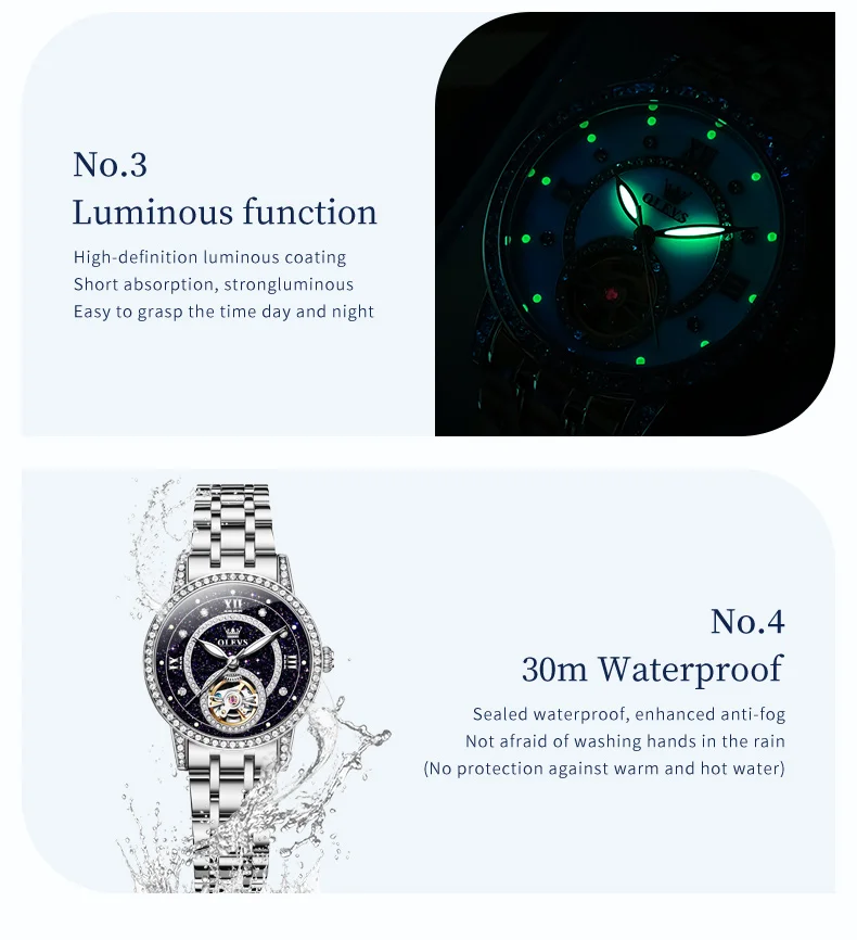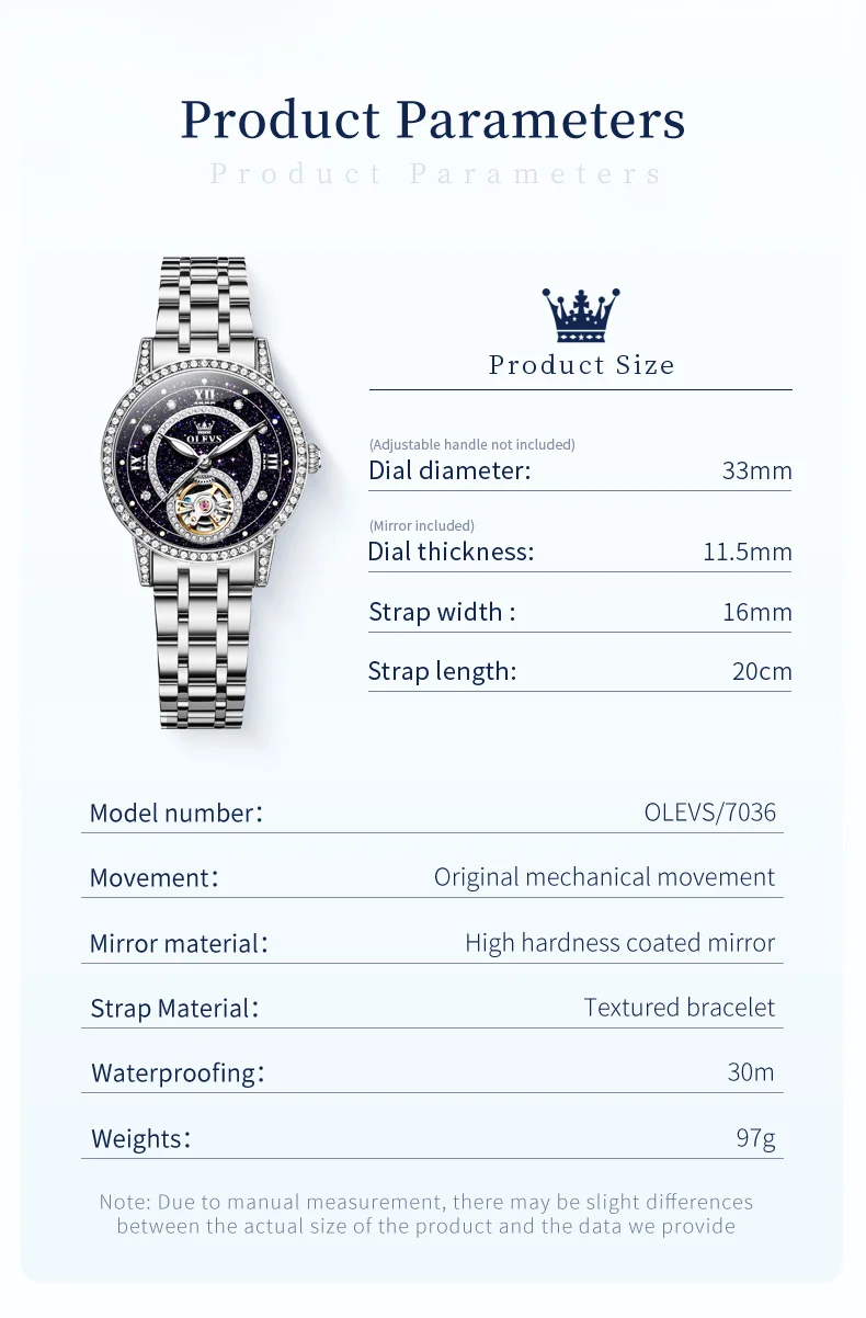OLEVS 7036 Women’s Skeleton Mechanical Watch – Diamond Bezel Elegant Automatic Ladies Wristwatch