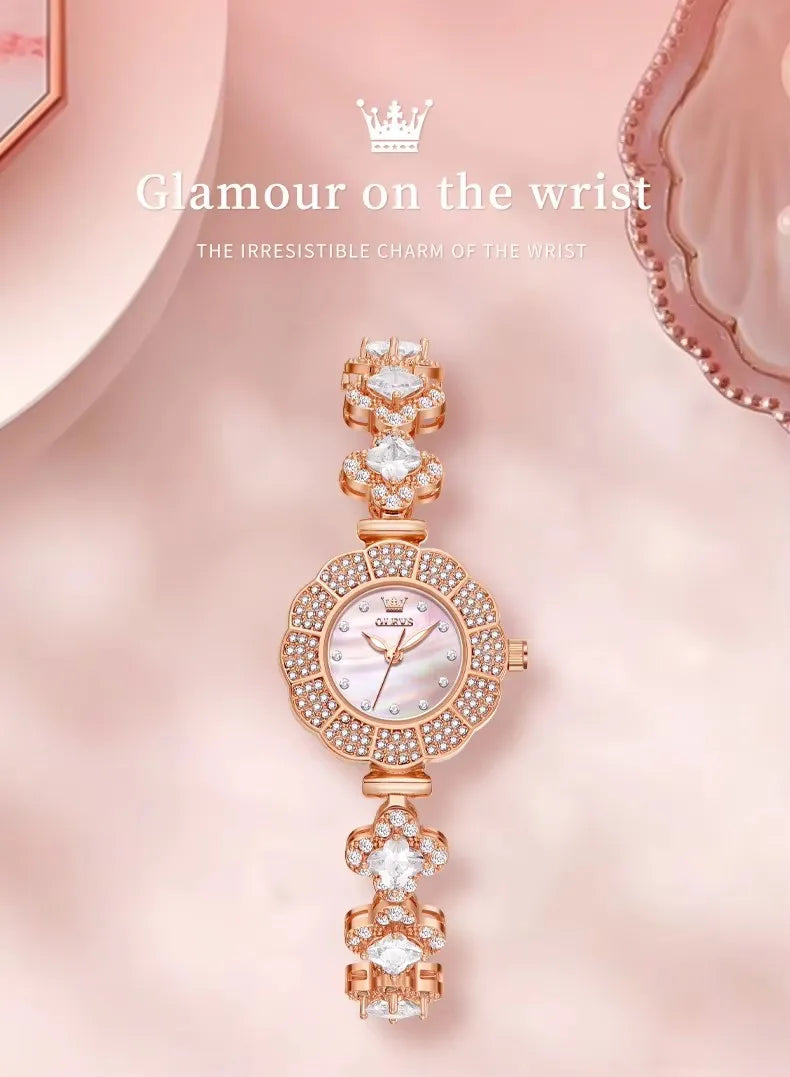 OLEVS 9813 Luxury Women's Quartz Watch – Diamond-Accented Waterproof Stainless Steel Bracelet Timepiece Mabel