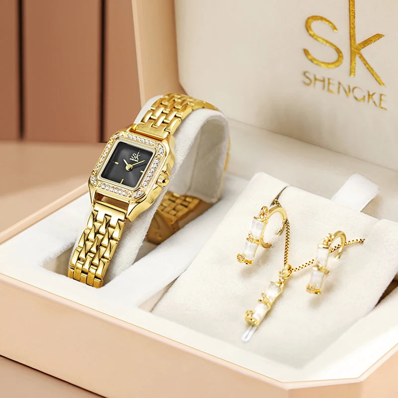 Elevate timeless elegance with the Shengke Ladies' Jewelry Watch Set, featuring a refined bamboo and maple leaf design. This classic vintage-inspired set is thoughtfully presented in a gift box, making it an ideal choice for women on any occasion. Combining delicate artistry with reliable craftsmanship, it offers both style and function, perfect for those who appreciate subtle sophistication in their accessories.