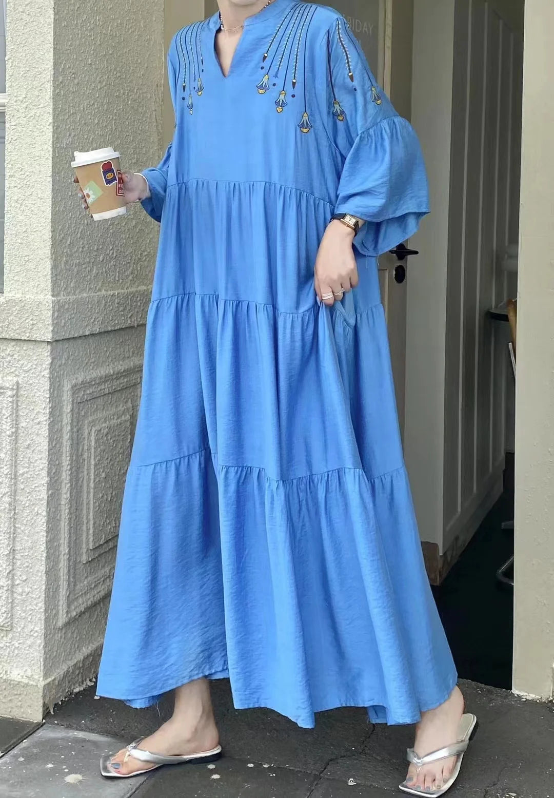 This vintage-inspired embroidered dress offers a timeless, modest look with a comfortable loose fit that gently flatters your figure. Designed for everyday wear, it combines classic elegance with a soft, feminine touch. Whether you're out for a casual stroll or enjoying a relaxed day, this dress brings effortless charm and playful grace to your wardrobe.