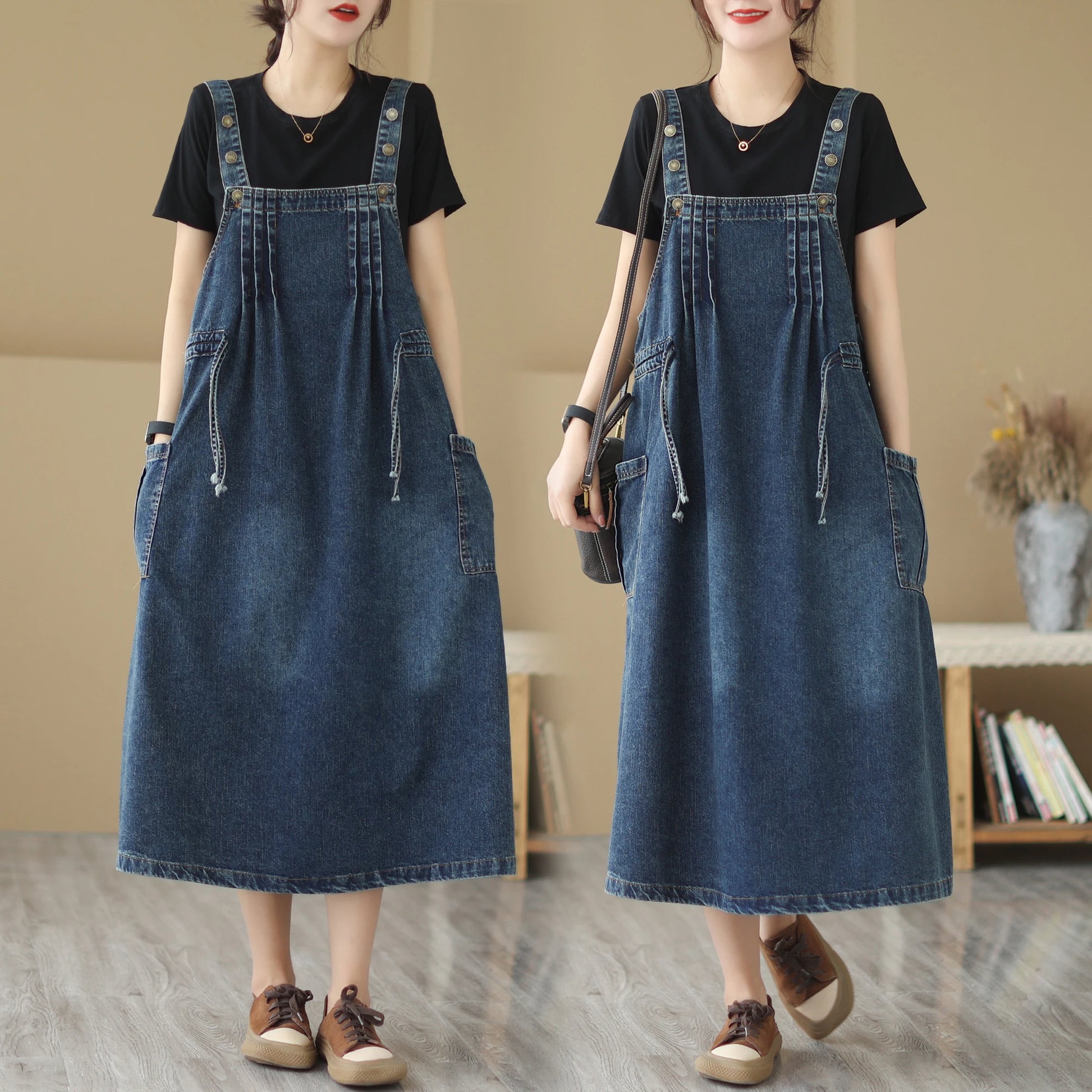 Summer Retro Slimming Camisole Dress | Women's Drawstring Waist Overall Style Dress Aila