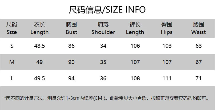 Size | Length (cm) | Bust (cm) | Shoulder (cm) | Pants Length (cm) | Hips (cm) | Waist (cm) |