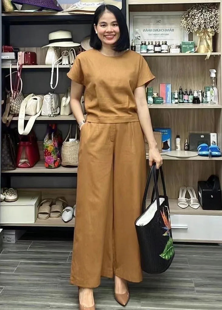 Women's Summer Two-Piece Set – Loose-Fit Top and Breathable Trousers