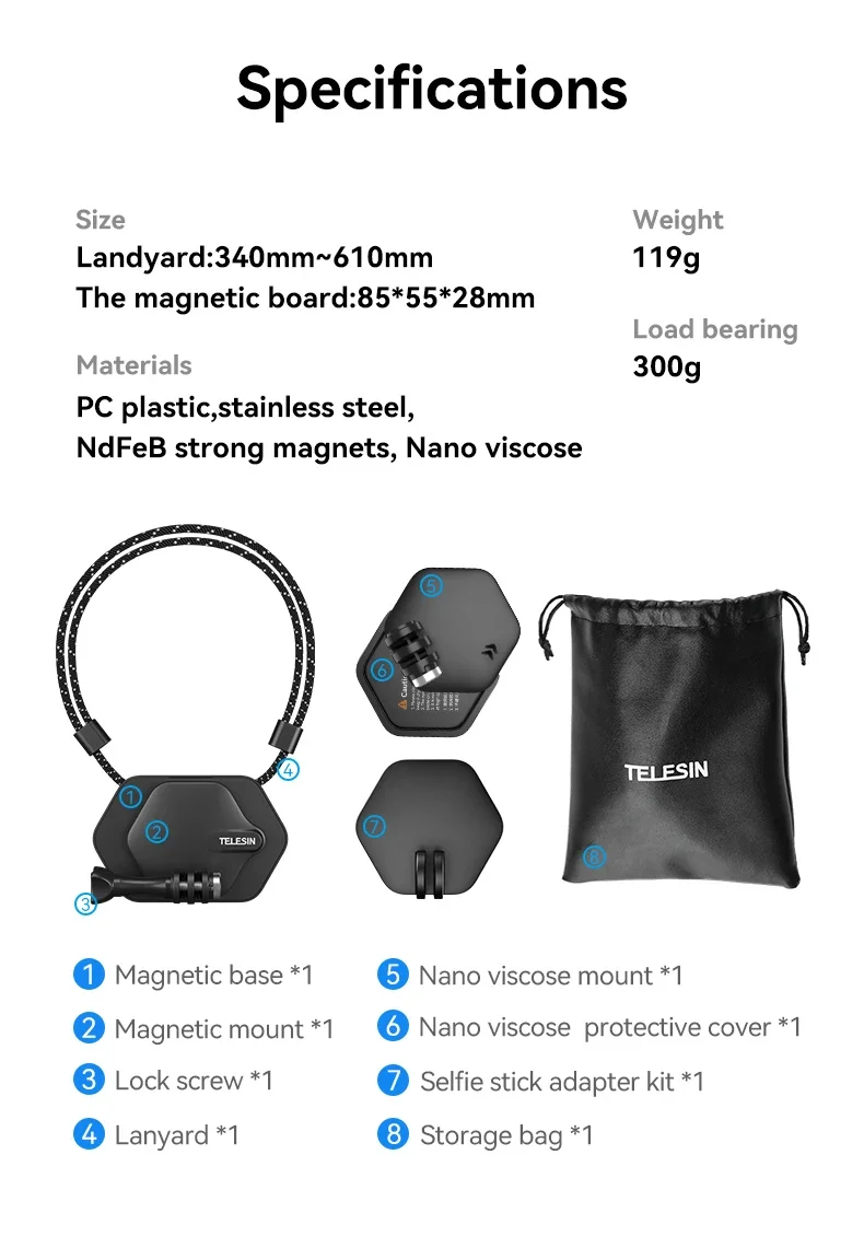 Easily mount your action camera or mobile phone with the TELESIN Magnetic Quick-Release Halter Bracket. Say goodbye to complicated attachments and hello to quick, secure, and convenient mounting. Perfect for on-the-go adventures and capturing those special moments!