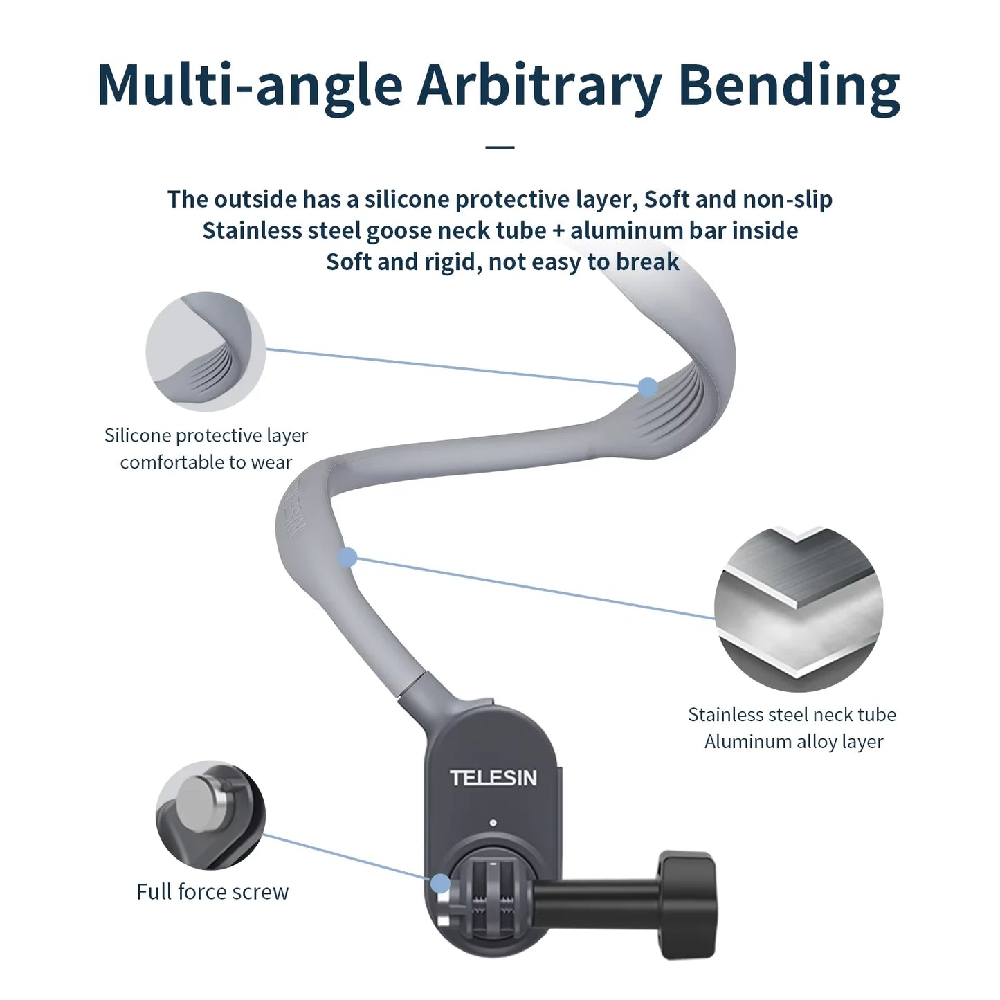 Experience a whole new level of convenience and freedom with the Telesin Upgraded Magnetic Silicone Neck Holder! Our hands-free bracket securely holds your GoPro, Insta360, or DJI Action Camera, allowing you to capture breathtaking footage without being weighed down. Enjoy the ultimate hands-free experience and never miss a moment again!