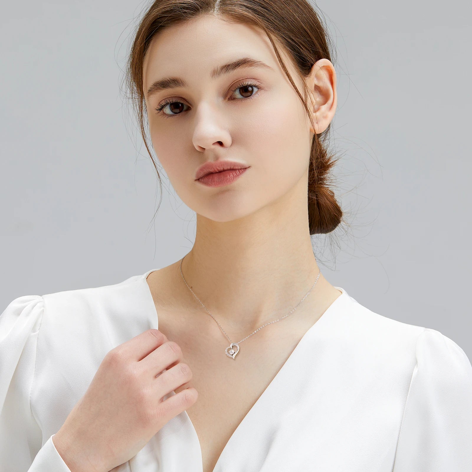 Valentine’s Day Heart Charm Necklace for Women – 925 Sterling Silver “I Love You” Pendant with Moissanite Diamond, Gift Jewelry for Birthday & Anniversary