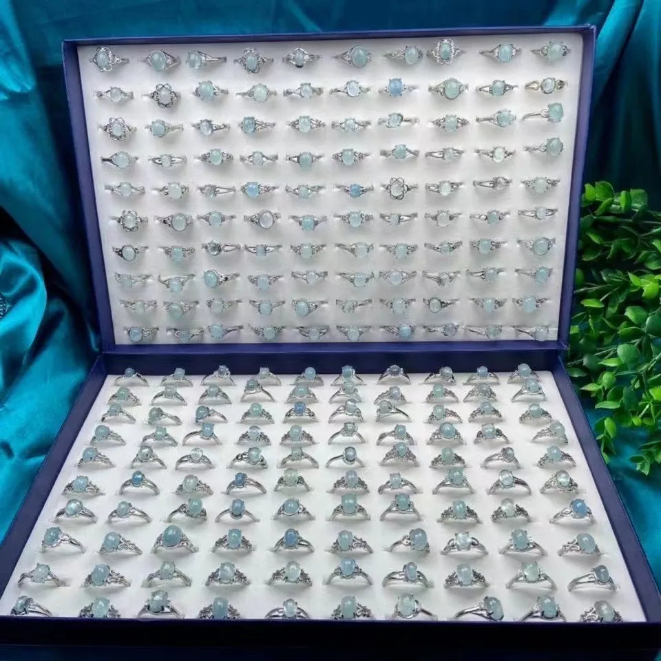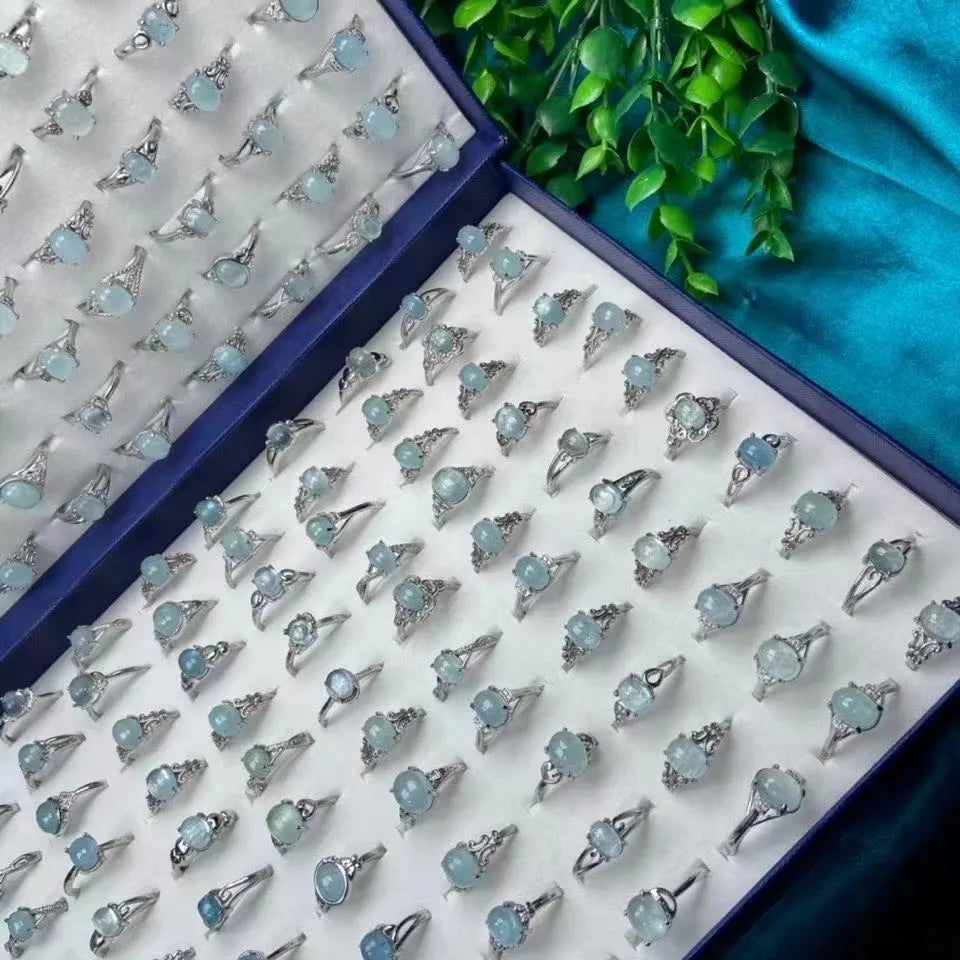 White Copper Silver-Plated Gemstone Rings – Resizable Aquamarine Crystal Finger Rings | Unique Gift for All Occasions