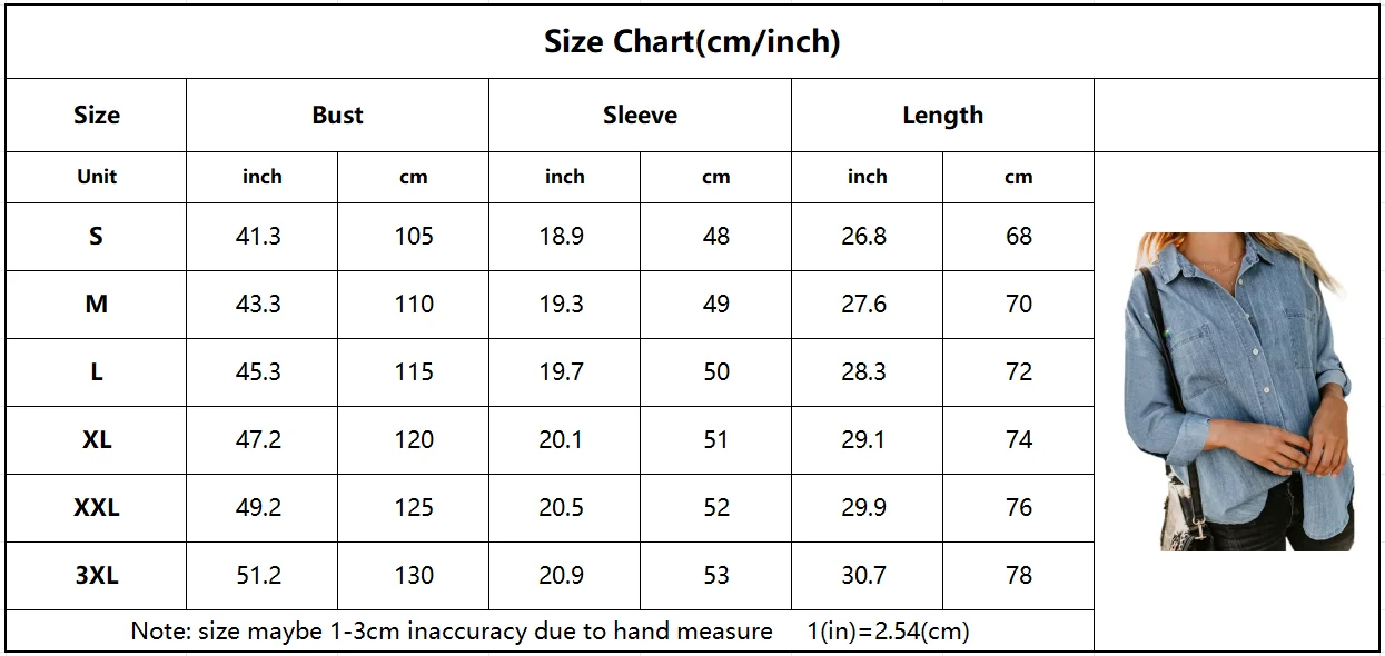 This women's denim shirt is perfect for a casual and versatile look. With its loose and comfortable fit, double pockets, and pure color design, it's both functional and stylish. Dress it up or down, this shirt is a must-have in any wardrobe.