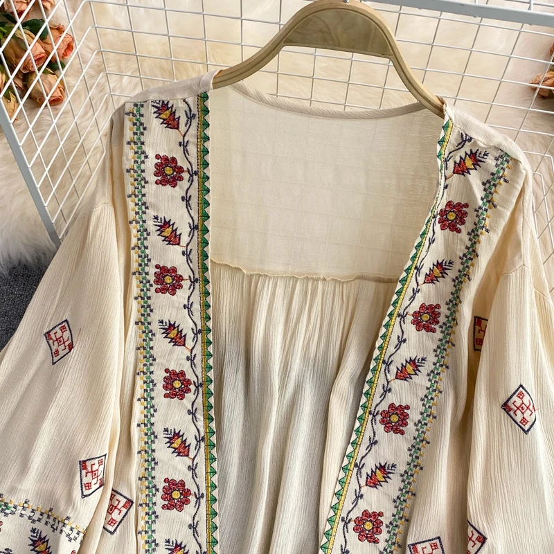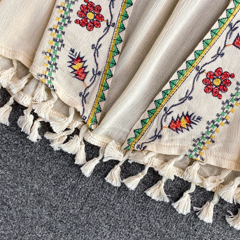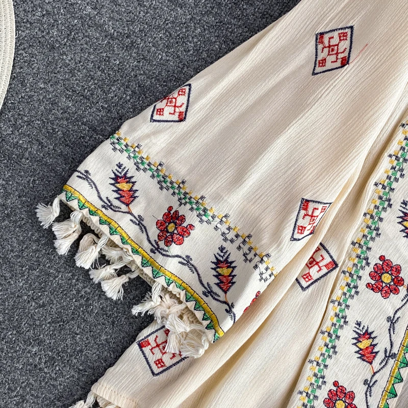 Women's Bohemian Ethnic-Style Loose Embroidered Tassel Top – Seaside Vacation Sun Protection Shawl Shirt