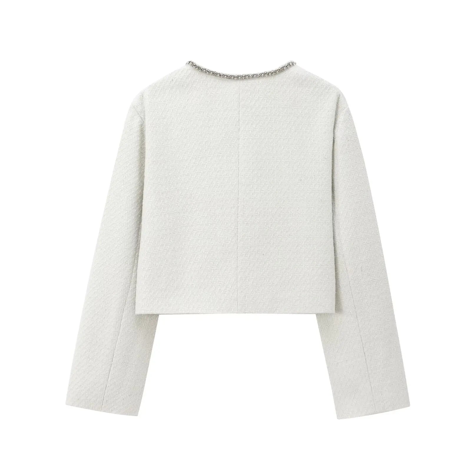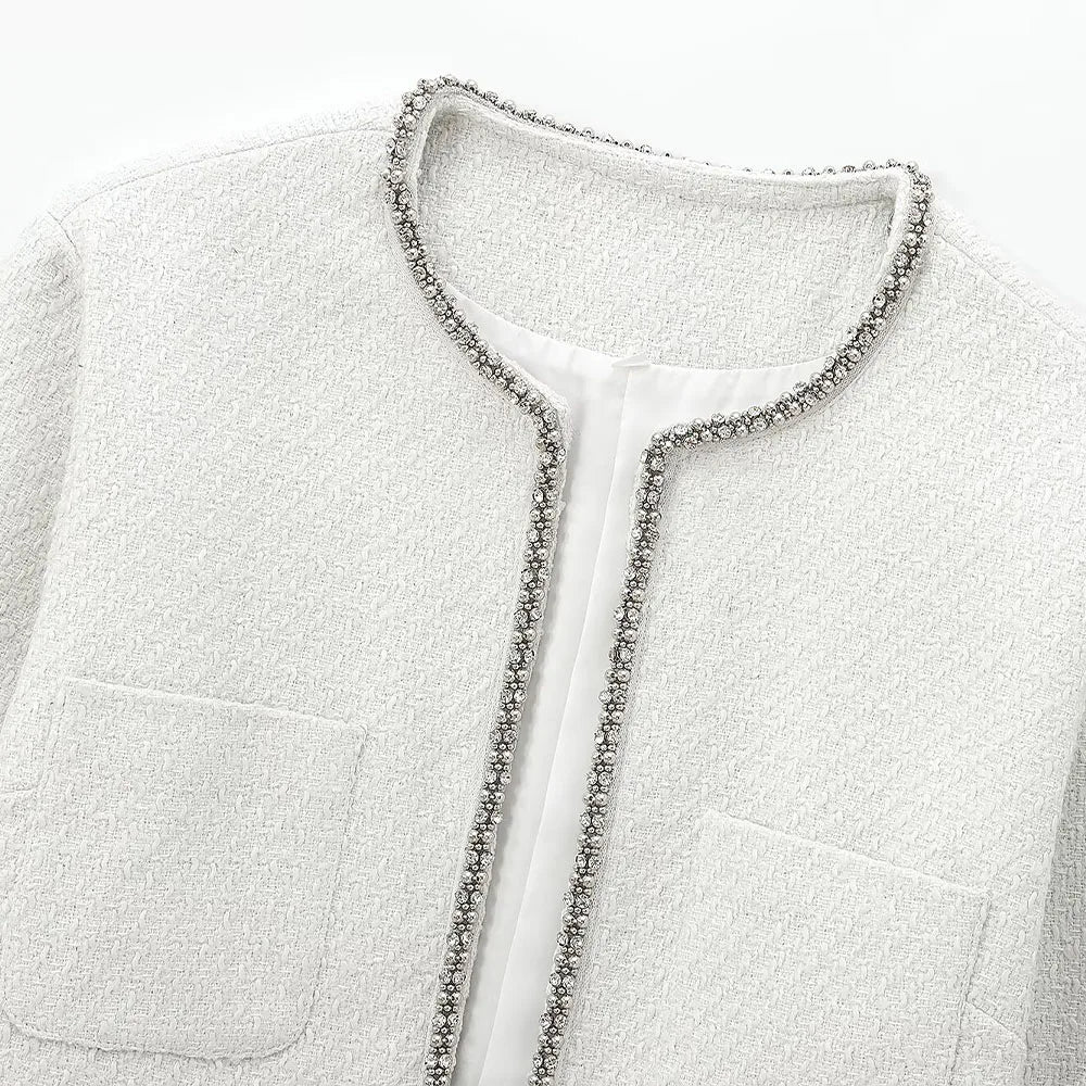 Women's Vintage Long Sleeve Chic Overcoat – Sequin Woolen Coat with Diamond Buckle Amy