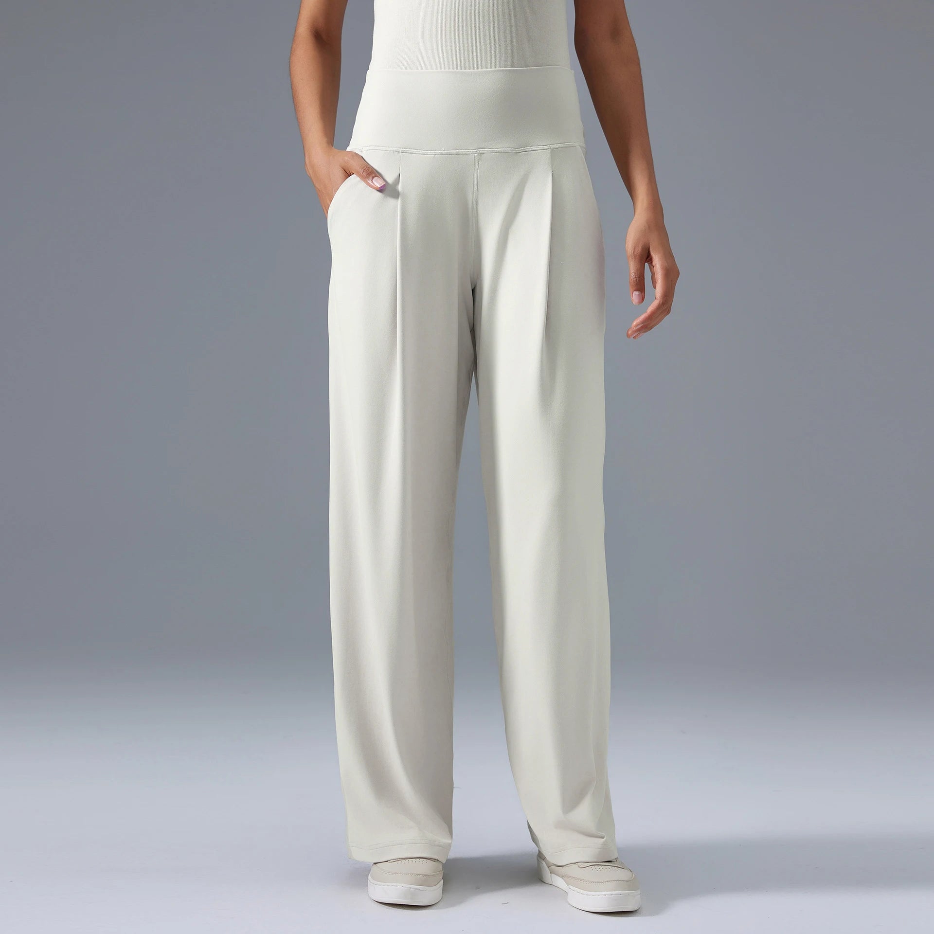 Designed for ultimate comfort and style, these women's wide-leg yoga pants feature a high-waisted fit that provides gentle support and a flattering silhouette. Crafted from soft, breathable fabric, they offer a flowy drape ideal for lounging, workouts, or casual wear. Functional pockets add convenience without compromising the relaxed design. Versatile and lightweight, these sweatpants are perfect for yoga sessions, relaxing at home, or running errands with ease.